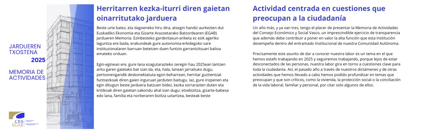 La elaboración de la Memoria Socioeconómica 2025 del CES Vasco —uno de los trabajos fundamentales de esta institución— se encuentra en plena fase de desarrollo con el objetivo de...